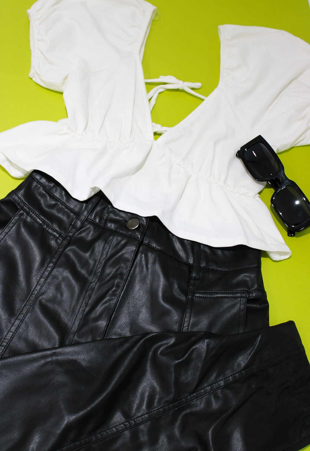 Elevate your style with the White Crop Top Ruffle. The delicate ruffles on the sleeves and hem add a touch of femininity to this classic white blouse. With a flattering neckline, this piece exudes sophistication and elegance. Perfect for any occasion, this top will be a staple in your wardrobe.